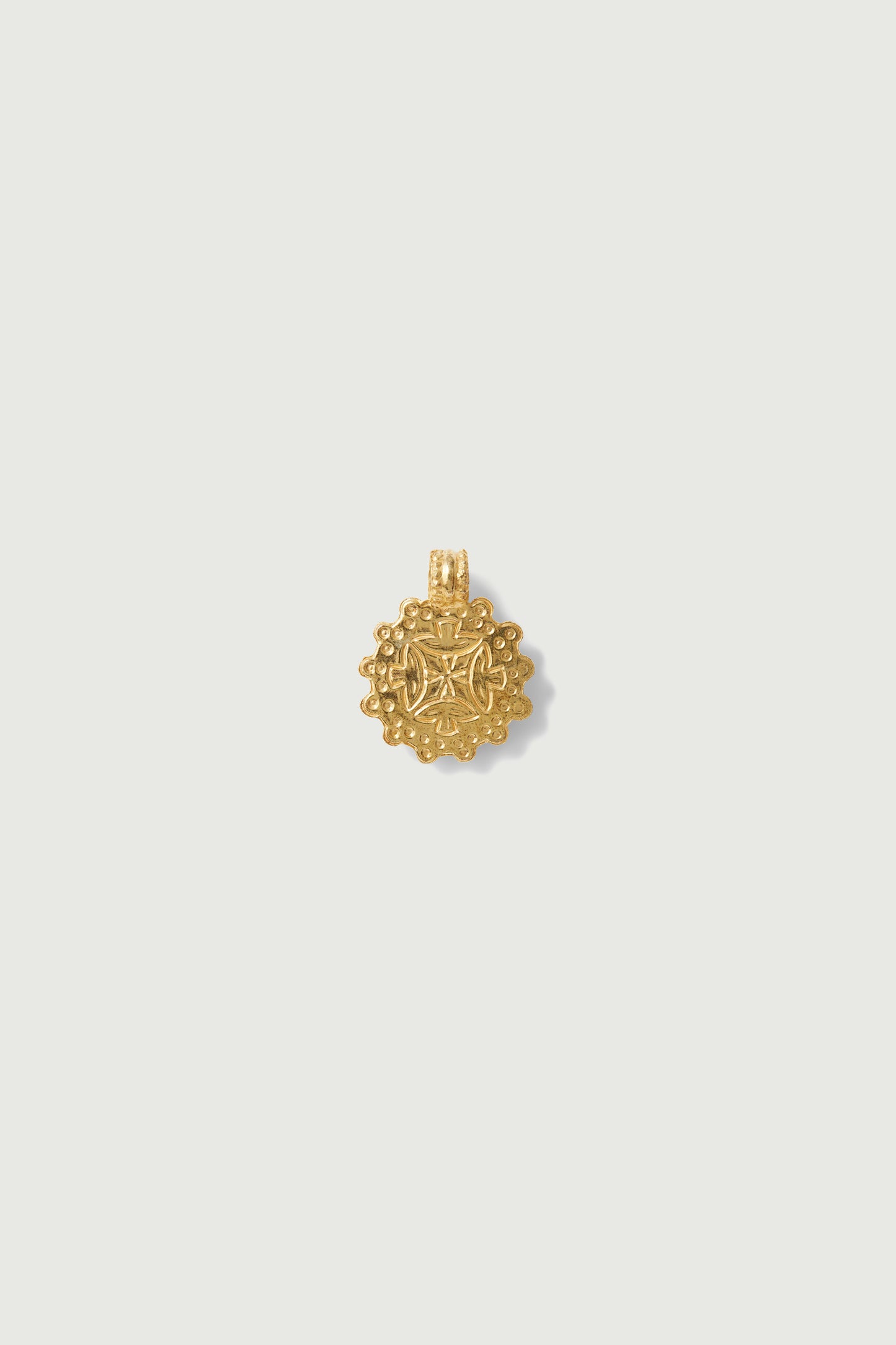 DOMITILLE 2 is a round vermeil pendant decorated with a swallow. The motifs inside the medal are engraved by hammering.