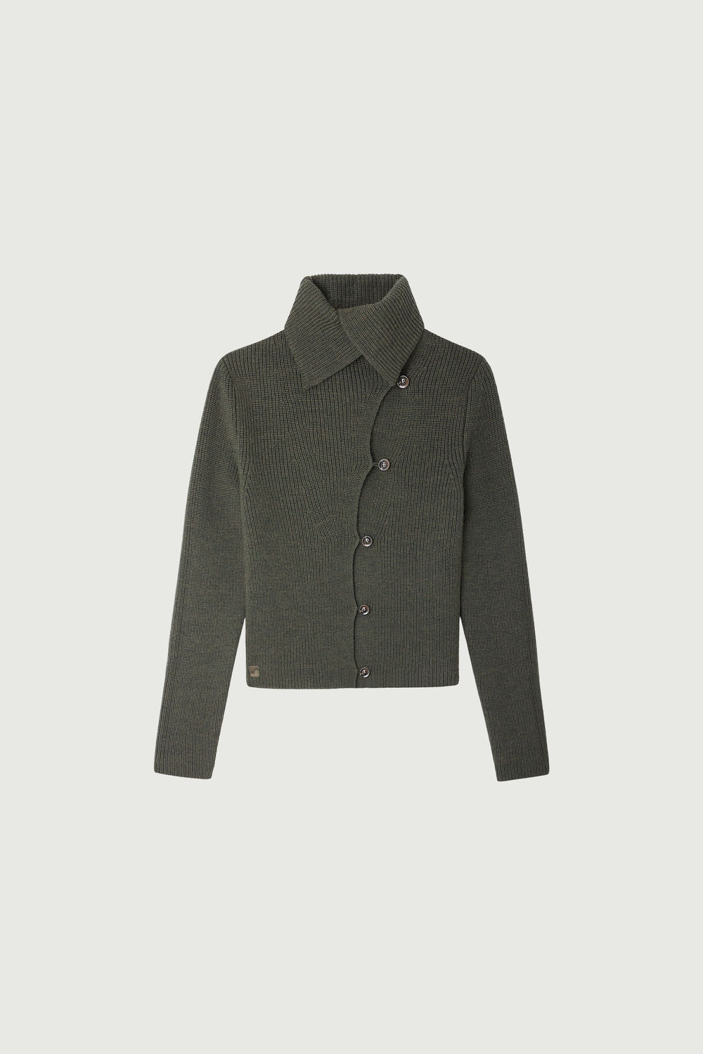 WIMY is a fitted ribbed knit cardigan. Numerous buttons allow for an adjustable collar, to be worn high or open. It can be worn directly on the skin as a cardigan or layered as a lightweight jacket. It is part of our monogram "S" embroidered line. This version is made from fine and warm merino wool.