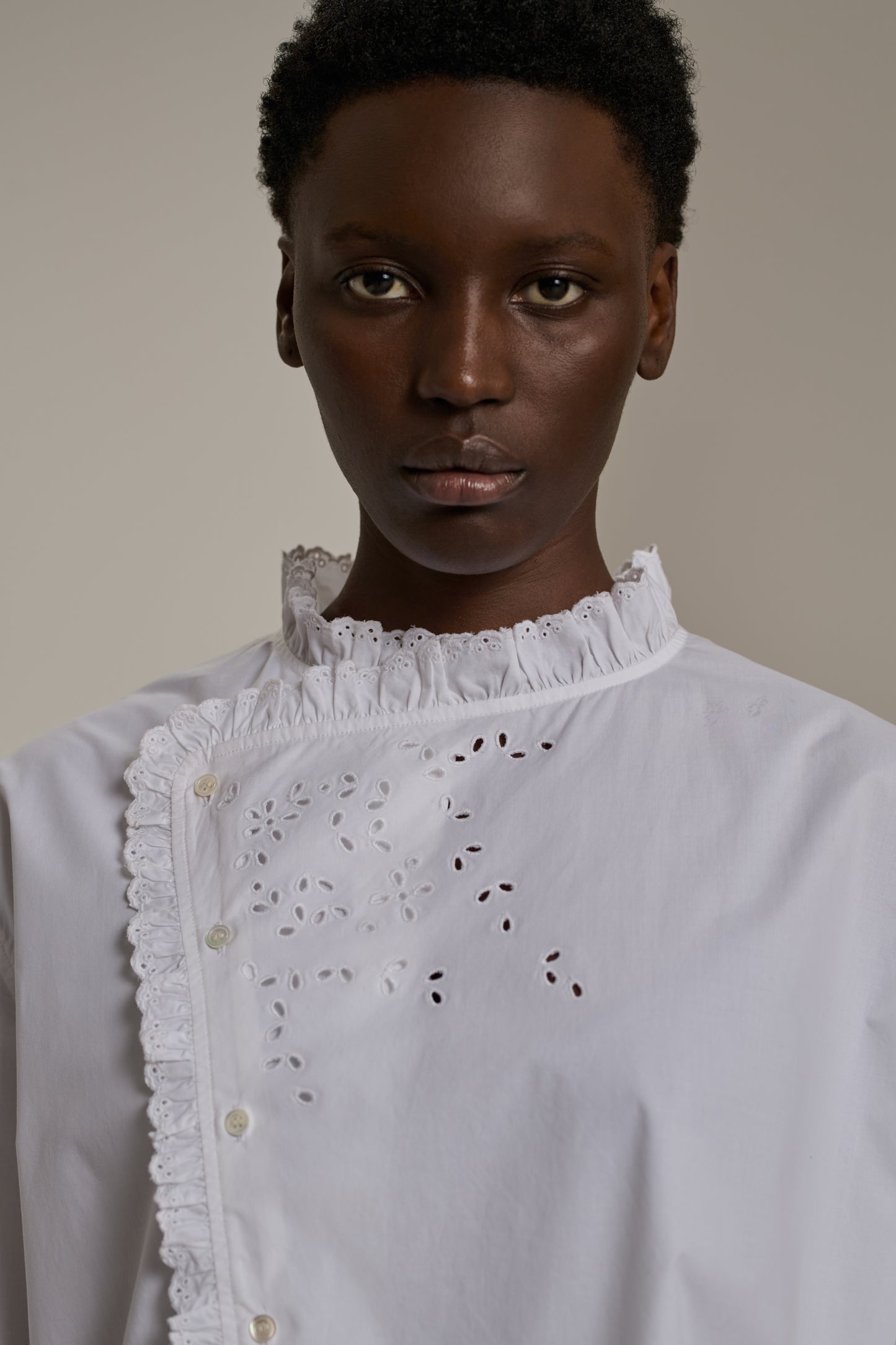 - Buttoned opening at the collar