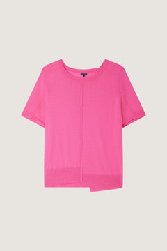 Pink long-sleeved extra-fine gauge merino wool jumper with asymmetrical trims